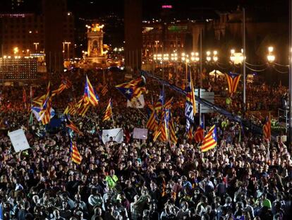 Desenes de milers de persones acompanyen les forces independentistes a Montjuïc
