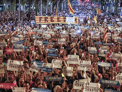Miles de personas se concentran en Barcelona para pedir la libertad de los presidentes de la ANC y Òmnium