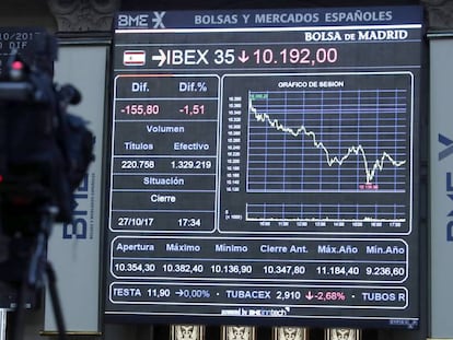 El Ibex cierra este viernes con pérdidas del 1,45% tras una fuerte caída por la declaración de independencia del Parlament