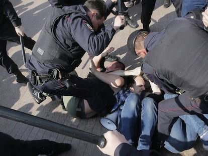 El principal líder opositor ruso Alexéi Navalni es detenido durante una manifestación no autorizada en Moscú, a dos días de la investidura de Vladimir Putin para un cuarto mandato presidencial