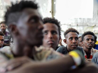 El ‘Aquarius’, fondeado exactamente a medio camino entre Italia y Malta, está preparado para una larga travesía a diferencia de lo ocurrido en junio cuando al final arribó a España