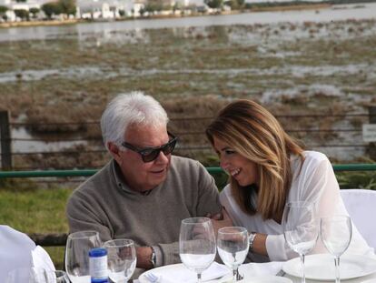El expresidente recibe un homenaje de los vecinos de Almonte por su implicación en el coto de Doñana, al que asiste la dirigente socialista andaluza