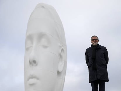 La Plaza de Colón ha estrenado este jueves un busto de 12 metros de altura. Julia , una enorme cabeza femenina del escultor Jaume Plensa, vestirá el pedestal de la plaza madrileña durante un año