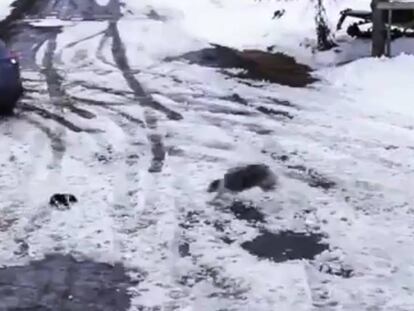 El animal se percató de lo que iba a suceder y apartó rápidamente al chihuahua de la trayectoria de un coche