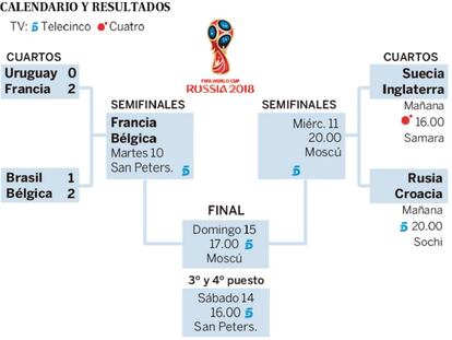 Comienza la lucha por el pase a las semifinales del Mundial. Entre los ocho países que aún siguen vivos en el torneo solo dos, Brasil y Uruguay, no son europeos