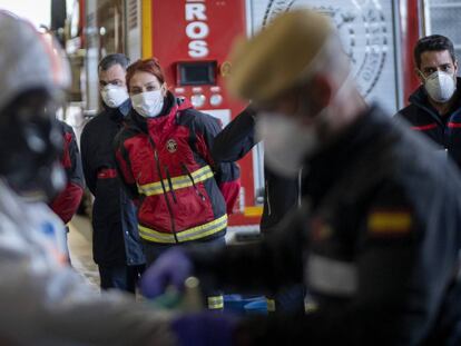 La UME inicia su particular desescalada con los bomberos sevillanos