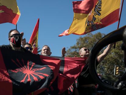 Banderas preconstitucionales, partidos ultras y apología del franquismo en el monumento a Colón
