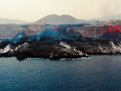 Científicos del Instituto de Ciencias Marinas de Andalucía emplean la grabación de imágenes de dron para estudiar el impacto de la colada en el medio marino