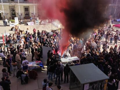 Activistas del Sindicat d’Estudiants dels Països Catalans boicotean una caseta de la asociación S’ha Acabat