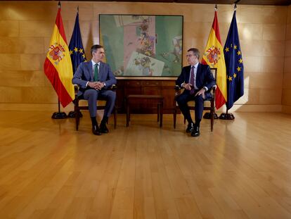 El presidente en funciones conversa con los líderes de UGT y CC OO y recibe su aval para continuar su política de distensión en Cataluña | El líder del PP adelanta que recurrirá la posible amnistía al Constitucional