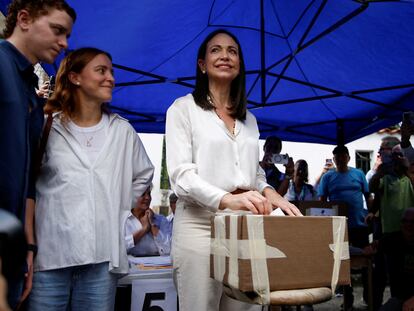 Ciudadanos venezolanos residentes en la capital colombiana acuden a las urnas para elegir en primarias al candidato opositor de las elecciones de 2024