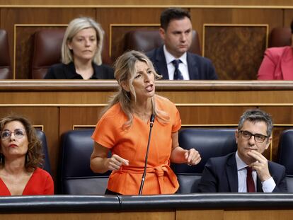 La vicepresidenta segunda pronunció esas palabras fuera del micrófono cuando el presidente del Gobierno recriminaba al líder de la oposición sus pactos con la ultraderecha