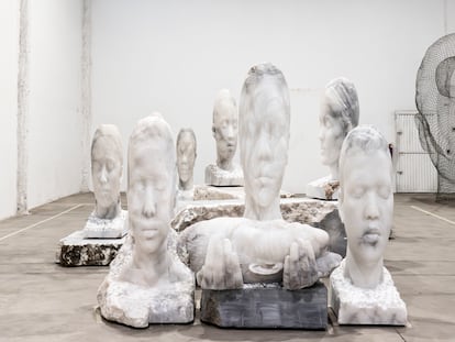 El artista barcelonés regresa al ‘stand’ de EL PAÍS en la feria ARCOMadrid 17 años después con ‘Entre sueños V3.0′, un monumental conjunto de esculturas en alabastro en torno al tema de la inmigración