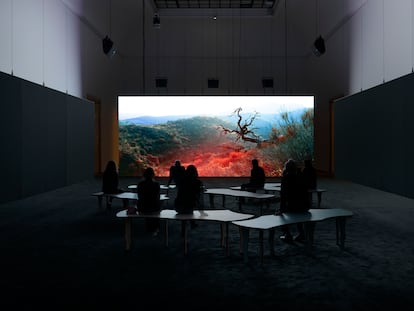 Philippe Parreno transforma un campo de almendros de cuatro hectáreas en Almería en un laboratorio que aúna creación artística, tecnología y conciencia ecológica, transmitiendo en directo el día a día del desierto de Tabernas a museos y galerías internacionales