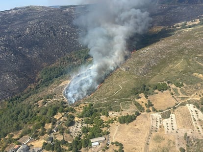 Las fuertes rachas de viento complican las labores de extinción del fuego, que evoluciona de forma favorable