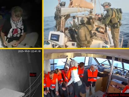 Las cámaras de los barcos de Global Sumud captan los momentos más tensos de la intercepción que ha tenido lugar en la madrugada del jueves