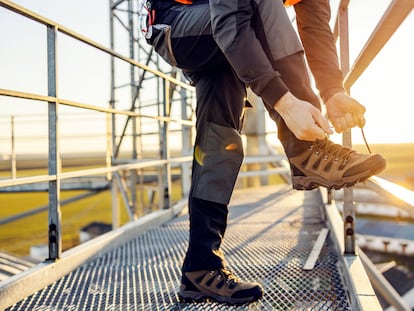 Este calzado con puntera de acero es transpirable e incluye una suela a prueba de pinchazos