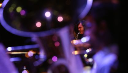 El recientemente elegido mejor músico de jazz de Europa, Jorge Pardo, en el festival Etnosur durante su actuación junto a su grupo Huellas Band y la Original Jazz Orquesta.