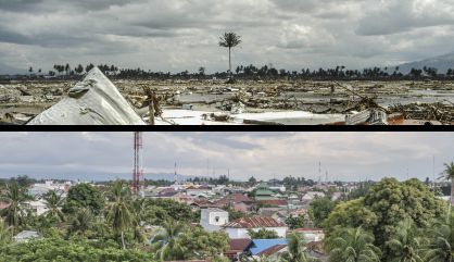 Diez años después de que una ola gigante arrasara las costas del sudeste asiático, el fotógrafo Rein Skullerud, del Programa Mundial de Alimentos, retrata los mismos escenarios, hoy reconstruidos
