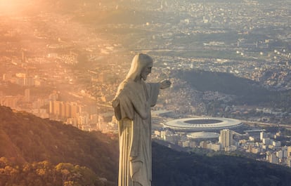 A los estadios brasileños hay que darles de comer aparte, por sus dimensiones ciclópeas y la pasión que se vive en sus gradas. Ahí están colosos como el Mané Garrincha de Brasilia, el Aderaldo Plácido Castelo de Fortaleza, el Morumbi de São Paulo o el Mineirão de Belo Horizonte, todos enormes, aunque las sucesivas reformas les hayan hecho perder aforo. Pero el mayor de todos, y la meca del fútbol verde e amarelo, es el estadio Periodista Mario Filho, más conocido como Maracaná por el populoso barrio en que se ubica. Para Gillard, esta cancha resulta excepcional por su entorno, entre las playas del Atlántico y las fértiles colinas de Rio, y por la abrumadora cercanía del Cristo Redentor del cerro de Corcovado, la estatua art déco de 30 metros de altura que “lo vigila como un ángel custodio”. También porque en él se disputó, por supuesto, uno de los partidos más celebres de la historia del fútbol, esa final mundialista de 1950 en que los uruguayos de Juan Alberto Schiaffino partían como víctima propiciatoria para la constelación de estrellas brasileñas y acabaron imponiéndose con un gol que heló el alma a 178.000 espectadores. Y porque alberga a los dos principales equipos de Rio, Flamengo y Fluminense, rivales acérrimos pero hermanos, pese a todo, por un recinto que exuda mística deportiva por todos sus poros.