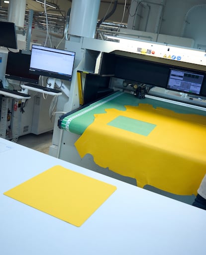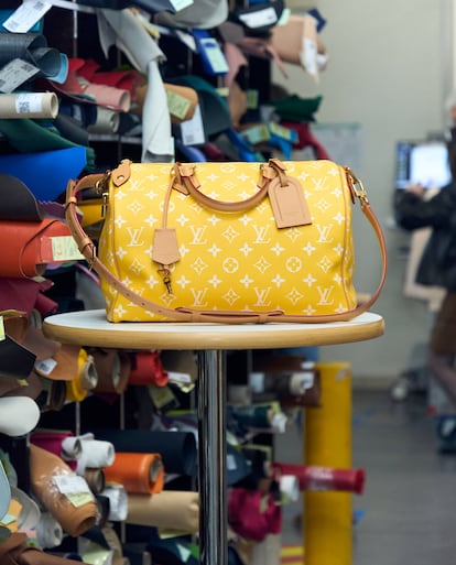 El bolso cuenta con tres pieles distintas: becerro en el exterior, suave y en tonos vibrantes; cordero en el interior, elástico y delicado, y vaca en los detalles, mucho más rígida. Jean-David decide si el cuero que llega es válido y le pasa el testigo a Eric, que saca de allí las piezas necesarias. Utiliza gigantescas máquinas de cortado, pero antes repasa a mano minuciosamente las pieles buscando imperfecciones y arrugas a evitar. “La máquina es muy precisa pero quedará obsoleta. Este proceso nunca se podrá automatizar del todo porque cada piel es única”, explica. En realidad, el nombre del Speedy —en español significa veloz— es toda una contradicción: tardan 15 semanas en preparar el cuero y 10 horas en el ensamblaje.
