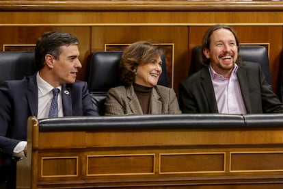 “Podemos”, afirma Monedero, “prometió sacar a Rajoy y cumplió; prometió sacar las políticas del PP y cumplió, y prometió construir una fuerza política diferente: ahí fracasó”. “Se volvió demasiado personalista, falló la democracia interna y ese personalismo sigue lastrando todo lo nuevo: está también en Más País y en Sumar”. La llegada de los socialistas a La Moncloa tras la moción de censura contra Rajoy (2018) obliga al partido de Iglesias a rediseñar su estrategia. “Cuando Pedro Sánchez llega al poder”, afirma Simón, “se produce un reenamoramiento del votante de izquierdas con el PSOE, como muestran los sondeos. Podemos tiene que diferenciarse, intenta transmitir que, si ellos no son fuertes, los socialistas girarán a la derecha y pactarán con Ciudadanos, pero la foto de Colón [el frente común de Rivera, Casado y Santiago Abascal, de Vox, en febrero de 2019] hacía ese discurso poco creíble”. Paradójicamente, esa resurrección del PSOE tenía mucho que ver con la influencia de Podemos. “La socialdemocracia de hoy”, afirma Monge, “está mucho más cerca que hace 10 años de los problemas reales, de las cuestiones ambientales o de género, y es gracias a Podemos. Sánchez entendió que cualquier cosa que sonara a élite, a establishment, se veía mal y que había que renovarse. Hace su propio 15-M dentro del PSOE”.