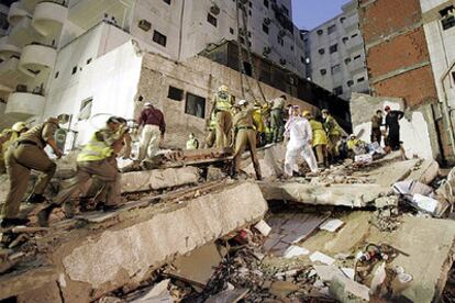 El edificio, que tenía 30 años, se desplomó ayer sobre la acera después de que se declarara un incendio en uno de los inmuebles aledaños. El hotel, situado en la calle Al Ghazal, se encuentra a 60 metros de los muros de la Gran Mezquita de La Meca y estaba siendo utilizado por numerosos peregrinos desplazados desde otros países para la peregrinación anual. Entre los muertos podría haber personas de Túnez y Argelia, según la Media Luna Roja Saudí.