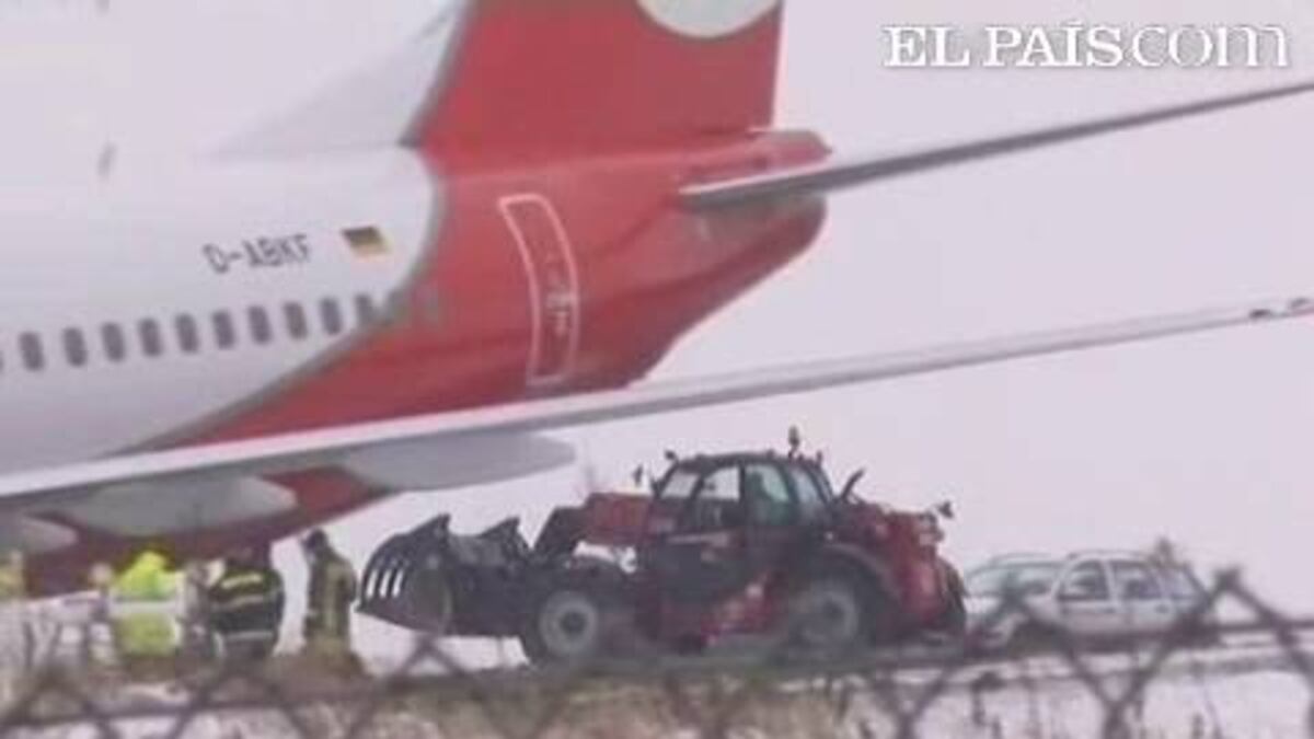 Un avión de la aerolínea Air Berlin, que debía despegar con destino a Gran Canaria, se salió este domingo de la pista en el aeropuerto de Dortmund después de que el piloto se viera obligado a frenar sobre el suelo helado debido a que los aparatos de control no parecían funcionar a la perfección. Las autoridades del aeropuerto informaron de que ni los miembros de la tripulación ni ninguno de los 165 pasajeros resultaron heridos.