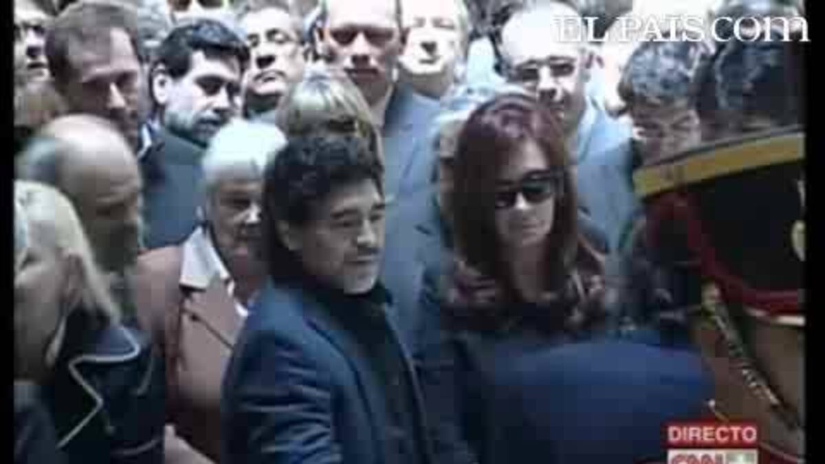 Miles de argentinos y personalidades de todo el mundo despiden los restos mortales del ex presidente, fallecido ayer. El futbolista Diego Armando Maradona ha abrazado a la presidenta y esposa del finado, Cristina Kirchner y ha permanecido unos minutos junto al féretro