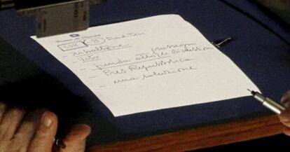 Tras la votación, Berlusconi no se ha ido de la sala inmediatamente. Mientras escuchaba las palabras del líder de la oposición, Pierluigi Bersani, del Partido Demócrata (PD), garabateó unas palabras en un bloc de apuntes. Tal como amenazó, el primer ministro escrutó el salón de plenos para tomar buena nota de quiénes habían sido los diputados desleales. Escribió: “8 traidores”. También anotó las palabras “presidente de la República” y “una solución”. Il Cavaliere se fue de la Cámara con el puñal clavado y murmurando: “Me traicionaron, ¿a dónde quieren ir?”. Si bien es verdad que el resultado de la votación ponía sobre la tarde otra pregunta más interesante: ¿qué hará ahora Berlusconi?
