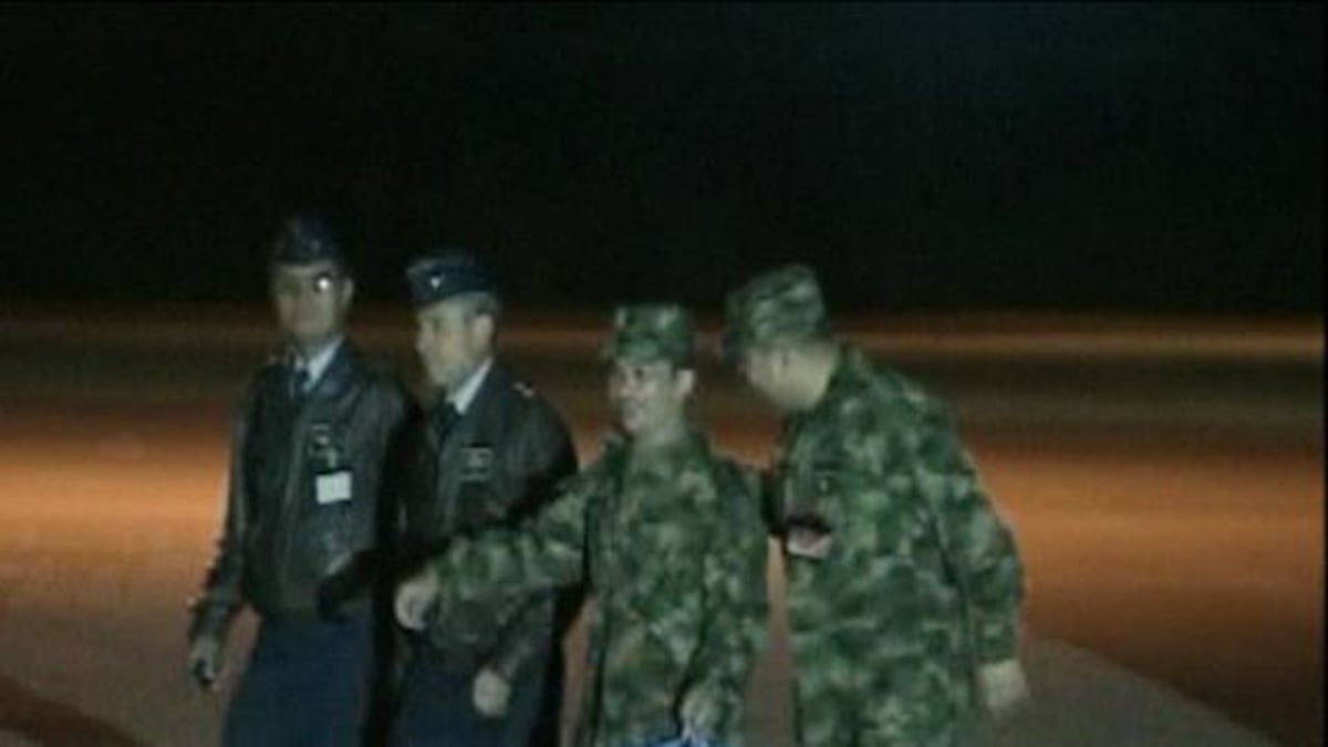 Los secuestrados fueron recogidos por un helicóptero brasileño en una zona desmilitarizada Fueron trasladados a la base de Villavicencio -donde vieron a sus familias- y luego a Bogotá
