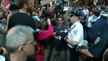Los indignados norteamericanos demuestran menos fuerza que hace un año, mientras tratan de rodear el edificio de la bolsa neoyorquina