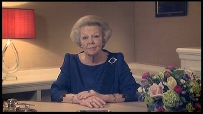 La reina Beatriz de Holanda ha cumplido este lunes con una doble tradición poco frecuente en otras monarquías: abdicar y hacerlo con discreción. En una escueta alocución televisada, la soberana, que cumple 75 años el jueves, y lleva 32 en el trono, ha agradecido a su pueblo “la confianza mostrada en mi labor durante los hermosos años pasados a vuestro servicio”. A continuación, ha invitado a los ciudadanos a recibir con los brazos abiertos a los futuros reyes, los príncipes Guillermo y Máxima. “Estoy segura de que están preparados para asumir esta responsabilidad”, ha dicho. La cesión del trono tendrá lugar el 30 de abril, Día de la Reina y fiesta nacional en el país. Para entonces deberá saberse el título elegido por Guillermo como rey. Su esposa será reina (consorte) y recibirá dicho tratamiento oficial.