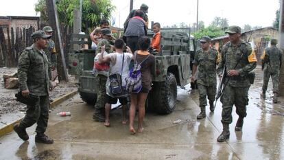 Guerrero, el epicentro de la desgracia, vuelve a ser uno de los Estados más amenazados. Centenares de personas han sido evacuadas en Acapulco, Chipancingo y Coyuca de Benítez, uno de los municipios más castigados durante el pasado mes. Su puente quebrado se convirtió en uno de los iconos de los estragos de las lluvias. Este lunes, el puente provisional que se había levantado en paralelo ha tenido que ser cortado por la crecida del río. El gobernador guerrerense, Ángel Aguirre, ha informado de que las clases están suspendidas hasta nuevo aviso en Acapulco y en los municipios de la Costa Grande. También ha pedido a los habitantes que tengan casas de techo de lámina que no sean resistentes a los vientos que se trasladen a alguno de los albergues seguros, como recomienda Protección Civil. Hay refugios habilitados en Acapulco, Zihuatanejo y Petatlán.