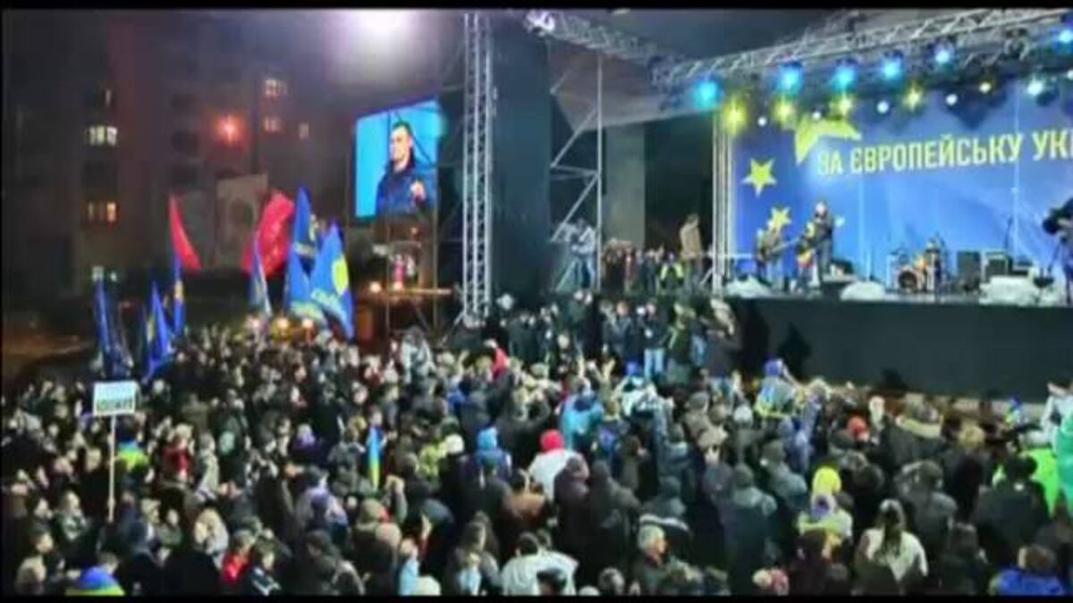 Está por ver aún como reaccionarán los ciudadanos que desde el pasado fin de semana participan en los mítines en Kiev y en otras ciudades de Ucrania para convencer a su presidente de que firmara el tratado esta semana. A instancias de Yulia Timoshenko, la ex primera ministra encarcelada en Járkov, los manifestantes que participaban en dos mítines distintos en el centro de Kiev se unieron anoche en un solo acto conjunto para subrayar su voluntad de unidad. Timoshenko, que está en huelga de hambre desde el lunes, pidió a los partidos políticos de la oposición que renunciaran “inmediatamente “ a los símbolos y banderas que habían exhibido hasta el martes.