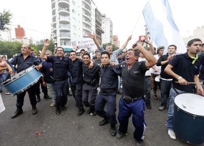 El alivio para el Gobierno es que salvo un pequeño grupúsculo del Mar del Plata, que solo abarca el 5% de las fuerzas provinciales, la mayor parte de la Bonaerense no se acuarteló. El gobernador Daniel Scioli se adelantó ofreciendo una subida de sueldo. Pero en el resto del país, el método de dejar las calles vacías obtuvo un éxito demoledor en siete días. Consiguieron aumentos de un promedio del 35% en 20 provincias. “Es que no les quedaba otra”, señala el exoficial de la Bonaerense. “La ley no nos permite organizarnos en sindicatos. Si no hubiesen actuado así los políticos les habrían engañado una vez más”.