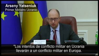 Por su parte, el primer ministro en funciones, Arseni Yatseniuk, acusó a Moscú de querer "empezar la tercera guerra mundial" mediante la ocupación "militar y política" de Ucrania y un conflicto que se extendería por toda Europa. El representante de Ucrania en el Consejo de Seguridad de la ONU, Yuri Serguéiev, explicó que en los vehículos rusos concentrados en la frontera está escrita la frase "misión pacificadora". "Desde el sudoeste observamos una gran concentración de artillería, tanques y efectivos humanos de los distritos del Centro y Norte y también tanques, artillería y equipo "Grad" (un tipo de misiles tierra-aire), un arma muy peligrosa que utilizaron en Chechenia", dijo Serguéiev, según el servicio ucranio de la BBC. "Ucrania, incluidos sus ciudadanos rusoparlantes, no necesitan una injerencia de los supuestos "pacificadores de la Federación Rusa", ha dicho el portavoz del ministerio de Exteriores en Kiev, Alexandr Perebiinis.