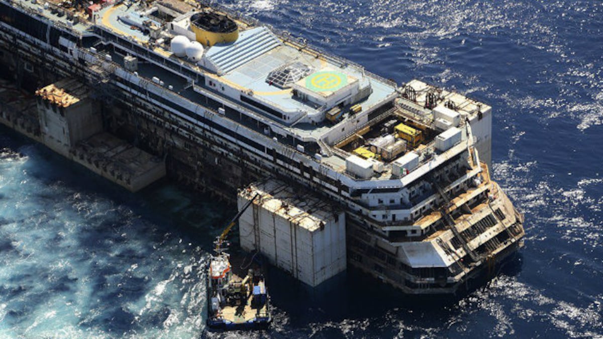 Desde entonces los restos del transatlántico han permanecido frente a Giglio mientras los ingenieros organizaban una de las mayores operaciones de salvamento marítimo de la historia. El 14 de julio los equipos desplazados al lugar del hundimiento lograron levantar el buque, de 114.500 toneladas, después de bombear aire en una treintena de cajas adheridas al casco.