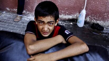 Muchos huidos de la escuela se refugiaron en el hospital de la zona, como el ama de casa Rania Abu Oud. Vivió dos semanas en el refugio con sus siete hijos. Explicaba con su bebé en brazos que los responsables les habían pedido que salieran al patio porque “era más seguro”. La ONU evacuaba la escuela por temor al fuego aéreo y artillero de Israel en esa zona norteña de la Franja, donde también se han registrado combates con armas ligeras. Rodeada por cinco de sus hijos, Oud decía recordar cuatro impactos de proyectiles en la escuela. Tras la primera explosión “cundió el pánico y decenas heridos se refugiaron en el edificio”. Después cayeron al menos tres proyectiles más, que reventaron las ventanas convirtiendo los cristales en metralla. La sangre que perdieron los cientos de heridos formaba charcos de varios metros de diámetro en la planta baja y en las escaleras. Las ovejas se adueñaron de los pasillos abandonados por los supervivientes de la explosión.