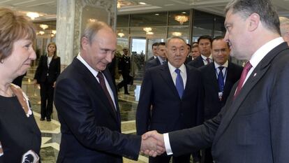 Al inicio de la reunión, en la que hace de anfitrión el presidente bielorruso, Alexandr Lukashenko —al que se ha calificado como el último dictador de Europa— Poroshenko afirmó que “en Minsk se decide el destino del mundo y de Europa” y llamó a respaldar su plan de paz, que incluye el desarme de las milicias prorrusas como “base para el arreglo” del conflicto que desgarra las provincias orientales de Lugansk y Donetsk. El presidente ucranio también habló de una “descentralización” del país, pero al mismo tiempo insistió en que Ucrania ha elegido ser un “Estado unitario”, algo con lo que no están de acuerdo los rebeldes.