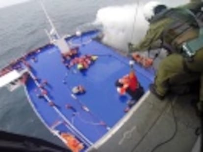 Cuando en la madrugada del domingo se declaró el fuego en el garaje del ferry, cargado con más de 200 vehículos —y, según testimonios de los pasajeros, varios camiones cisterna con aceite—, un fuerte temporal con olas de más de seis metros se abatía en el Adriático. Las llamas empujaron a los más de 300 pasajeros que no habían encontrado sitio en los botes salvavidas a la cubierta superior de la nave, y después hasta el helipuerto (el punto más alto del barco), a la espera de ser evacuados. Los rescates, a cuentagotas dada la escasa capacidad de carga de los helicópteros (único medio capaz de acceder a la nave) y a las difíciles condiciones meteorológicas, prosiguieron durante la noche del domingo al lunes bajo el comando operativo de Roma y en estrecha cooperación con las autoridades griegas y albanesas. Tirana mantiene en estado de alerta el puerto de Vlore, ya que el Norman Atlantic está a tan solo siete millas náuticas de la costa de Albania, y no descarta que el remolcador italiano que había conseguido enganchar la embarcación el domingo consiga mover la nave, pese a que persisten activos varios focos del incendio.