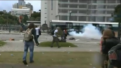 La policía lanzó pelotas de goma y bombas de gas lacrimógeno a los manifestantes que intentaron entrar en la asamblea legislativa de Curitiba, al sur de Brasil