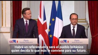 David Cameron inició ayer su viaje reuniéndose con el primer ministro holandés, Mark Rutte, y esta noche cena en París con François Hollande. El presidente francés ya ha descartado cualquier nuevo tratado antes de las elecciones presidenciales de 2017 y también ha expresado sus reservas a los planes de Cameron de excluir a los trabajadores europeos de las prestaciones sociales hasta que lleven cuatro años residiendo en Reino Unido. Las mismas reservadas le trasladará previsiblemente la canciller alemana, Angela Merkel, cuando reciba hoy a Cameron en Berlín, etapa final de su viaje relámpago, después de la reunión de este en Varsovia con su homóloga Ewa Kopacz.
