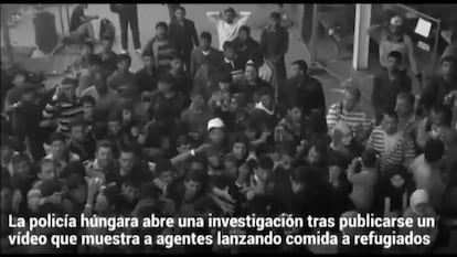 La Policía húngara ha anunciado este viernes que se ha abierto una investigación después de que un vídeo colgado en Internet mostrara inmigrantes y refugiados pidiendo alimentos en un hangar en un centro de recepción mientras agentes, con mascarillas, les lanzaban paquetes de bocadillos.