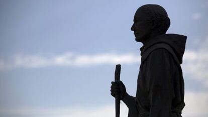 En cierto sentido, así es. El fraile mallorquín Junípero Serra se lanzó a evangelizar los territorios del norte de California junto a las expediciones militares de la corona española a finales del siglo XVIII. Llegó a este territorio prácticamente inexplorado en 1769, a los 56 años después de dos décadas en México, y en poco más de una década había fundado nueve misiones entre San Diego y San Francisco. Serra, poco conocido en España, es en California un personaje histórico monumental que se estudia en los colegios y sin el cual no se entiende la historia del oeste americano. Por ejemplo, cada estado de EE UU está representado en el Capitolio de Washington por dos estatuas. Las de California son Junípero Serra y Ronald Reagan. Según cuenta el historiador Steve Hackel, Serra “dijo que iba a morir en California predicando el Evangelio y lo cumplió. Completó su misión y murió como un héroe”. El fraile mallorquín “es nuestro Colón, nuestro Cortés”, decía Hackel en una entrevista con EL PAÍS poco después de anunciarse la canonización.