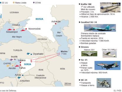 Asesores militares rusos se han integrado en las filas del Ejército de El Asad para manejar los nuevos misiles tierra-tierra que se han suministrado a Damasco. El despliegue ruso se completa con fuerzas especiales que protegen, junto con carros de combate y misiles tierra aire SA-22, a los aviones y helicópteros estacionados cerca de la ciudad de Latakia. El Kremlin ha efectuado además una demostración de fuerza al atacar posiciones de la insurgencia en Siria con misiles de crucero disparados por su flota en el mar Caspio, a más de 1.500 kilómetros del escenario de combates.