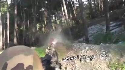 Una enorme nube de polvo envuelve al puñado de soldados del Ejército sirio mientras se cubren las orejas para evitar que el estruendo les reviente los tímpanos. Tras un breve ajuste de coordenadas, regresan al lanzacohetes insertando una nueva carga. A pocos metros a su izquierda, el disparo de un misil retumba dejando un destello detrás. El impacto levanta otra columna de polvo y humo esta vez a siete kilómetros del puesto de artillería. Se trata de la localidad de Hawarin, donde decenas de yihadistas del Estado Islámico (ISIS, por sus siglas en inglés) intentan contener el avance de las tropas regulares para retomar Palmira. La respuesta de los yihadistas no se hace esperar con una lluvia de morteros.