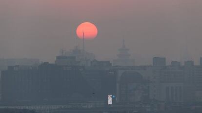 Los cielos azules tienen las horas contadas en Pekín. Las autoridades locales han decidido activar la alerta roja, la más alta posible, por los niveles de contaminación atmosférica que se esperan en la capital china (y en general en todo el norte del país) durante este fin de semana y comienzos de la próxima. Es la segunda vez en la historia que la administración local decide aprobar esta medida drástica, que supone sacar de las calles la mitad de los vehículos, reducir la actividad de las fábricas o la recomendación de suspender las clases en las guarderías y las escuelas de primaria y secundaria. La primera vez que se aprobó una medida de tal calibre fue apenas hace dos semanas.