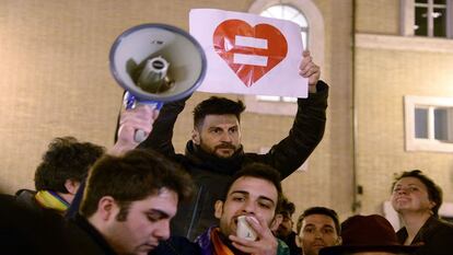Se trata tan solo de una victoria a medias. El Gobierno de Matteo Renzi logró este jueves que el Senado italiano diera luz verde —con 173 votos a favor y 71 en contra— a una ley de uniones civiles entre parejas del mismo sexo, pero tan descafeinada que cualquier parecido con el proyecto original de la senadora Monica Cirinnà, del Partido Democrático (PD), es pura coincidencia. Si bien los homosexuales italianos tendrán por fin derecho a regularizar su situación, la nueva ley —que aún deberá pasar por el tamiz de la Cámara de Diputados— excluye la posibilidad de que uno de los miembros de la pareja adopte a los hijos naturales de su cónyuge y también el llamado “compromiso de fidelidad”, una cláusula que sí incluyen las uniones civiles heterosexuales, estableciendo una pequeña —y simbólica— diferencia con las homosexuales.