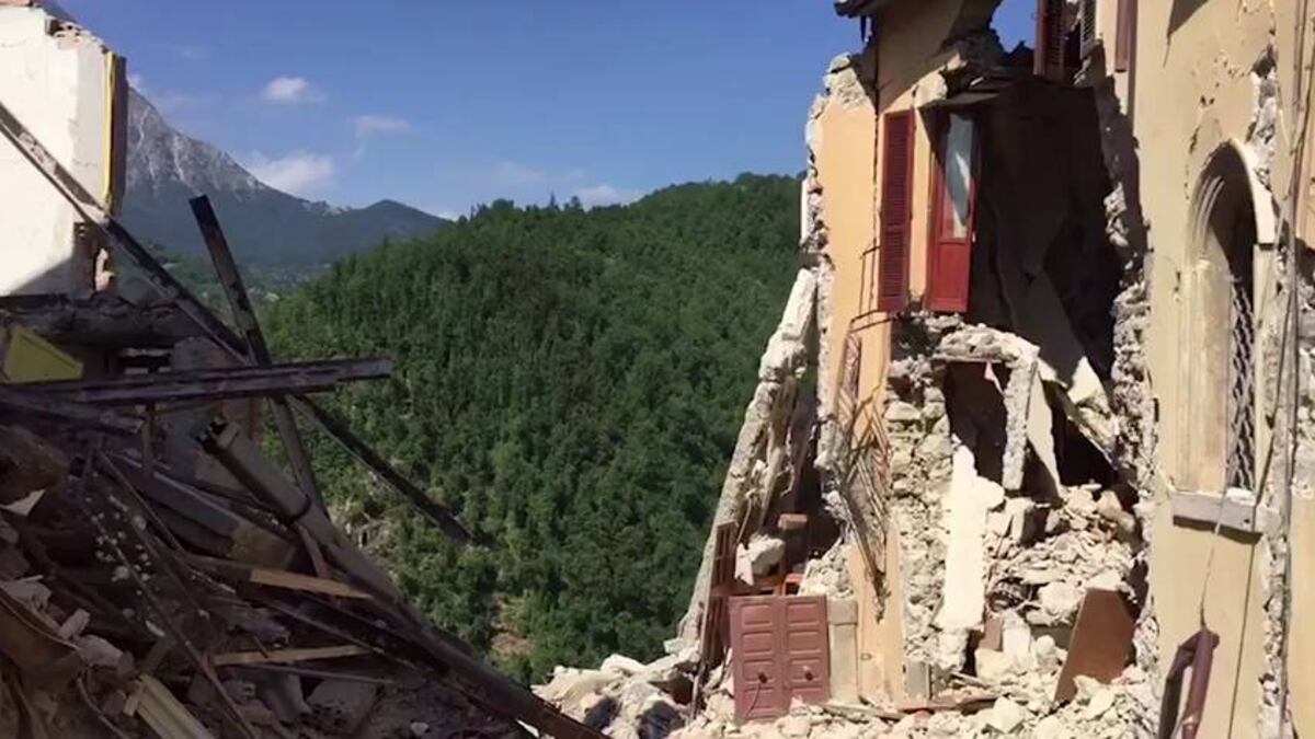 Aunque lo parezca, no es una exageración. Una visita –bajo la supervisión de un retén de bomberos—a la “zona roja” de Arquata resulta sobrecogedora. Caminar entre los escombros que la madrugada del pasado miércoles acabaron con la vida de 49 vecinos permite descubrir una ventana desde la que se ve el abismo. Solo que mirándola desde fuera. La casa que había detrás se desplomó con sus moradores barranco abajo. La belleza de Arquata tenía mucho que ver con el vértigo. Su barrio histórico está –o tal vez habría que escribir estaba- colgado sobre una roca desde la que se divisan dos parques nacionales y los confines de tres regiones que la circundan, Lazio, Umbría y Los Abruzos. El terremoto –y tal vez la temeridad de no haber adaptado las viejas casas al peligro sísmico- acabó en apenas unos minutos con una historia que se remonta a la Edad Media.